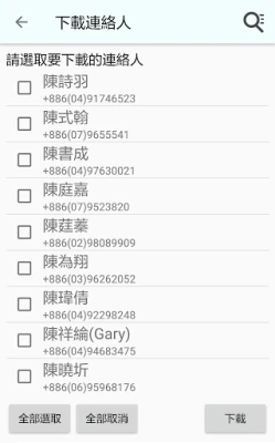 使用者可透過查詢介面,確認資料下載的範圍後,將所選擇的連絡人資訊下載到行動裝置。
