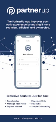 With features like job search, easy profile management, job interest tracking, assignment updates, instant access to pay stubs, and a seamless onboarding process, PartnerUp makes your work experience smoother and more efficient than ever.