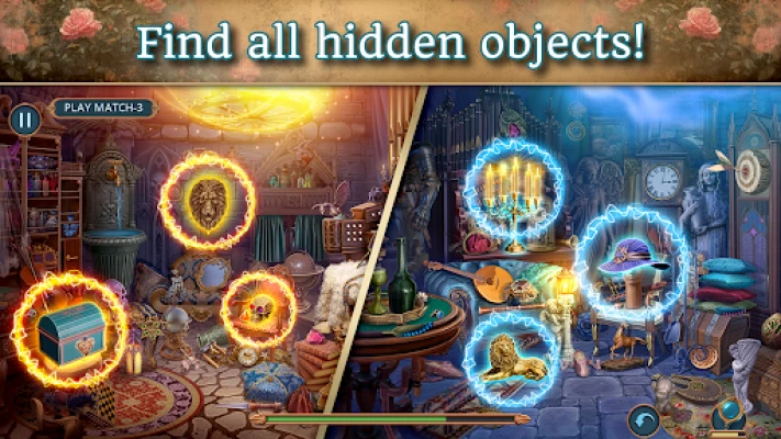 Go through the entire "Royal Romances" point and click adventure games series to enjoy the real find objects game, love fantasy romance episode & highlights hidden pictures in an atmosphere of myths and monsters with magic puzzles & hidden object games!