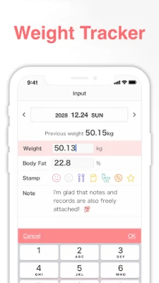SmartDiet is an easy-to-use weight tracker for monitoring weight loss, weight gain, body fat percentage, BMI, and body measurements. Unlike other complex weight management apps, SmartDiet offers a simple and efficient way to log your progress. With just one tap, you can add data and track your transformation using the built-in weight calendar.