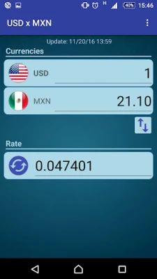 A simple currency converter from United States Dollar to Mexican Peso and from Mexican Peso to United States Dollar.